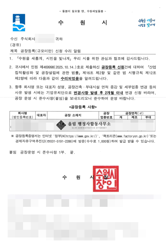 특히 저희 올림 행정사합동사무소는 공장등록이 있어야