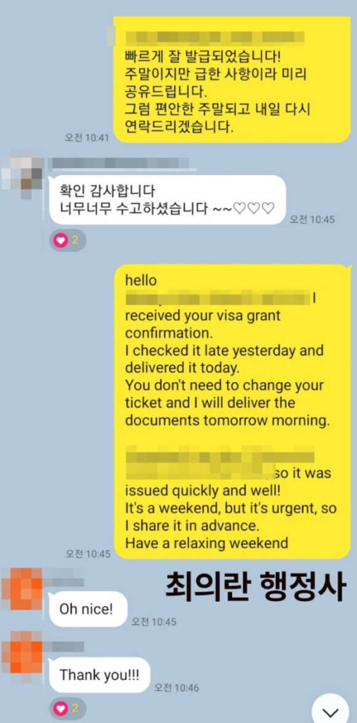 꼭 상담 및 디테일한 부분까지 점검하셔서 비자를 수월하게 발급받으시길 바랍니다.