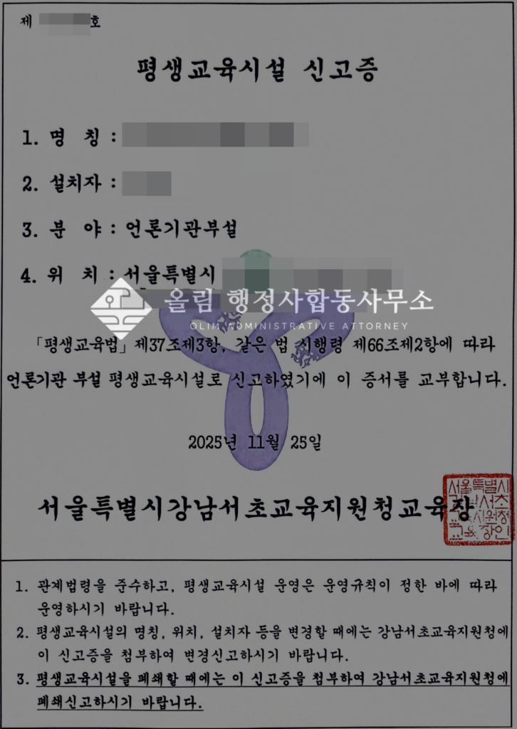 최근에 교육사업을 민간자격증으로 운영하시다가 점차 확장하셔서 온라인 교육사업을 하시려는 대표님의 교육지원청 등록 업무를 진행해드렸습니다.