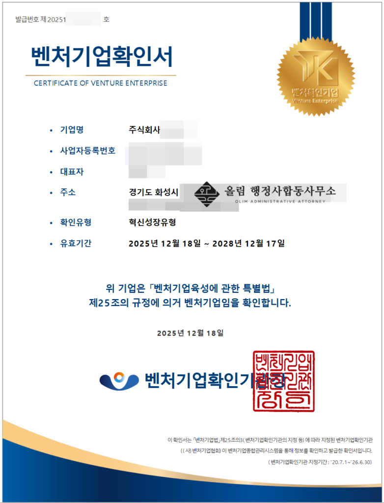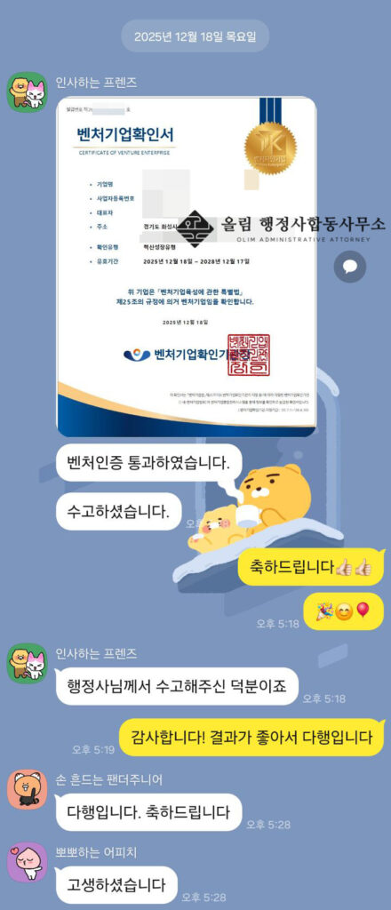 결론적으로 벤처기업 이의신청에 심의 통과하여 벤처기업 인증을 받았습니다.